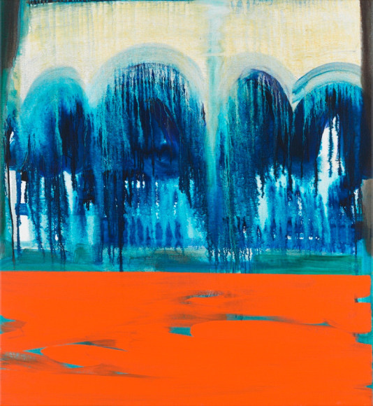 Her abstract and non-figurative paintings shows a spatial complexity achieved only through the play of light and color. The surfaces in her paintings are alternately transparent and reflective, and a closer look reveals occasional matte areas, which define the physical surface on which she works. The various levels of transparency and reflection are achieved through different types of paint: oil, enamel and alkyd. Her color choices range from organic to synthetic – from the pastoral colors of the garden to the neon lights of the nightclub.