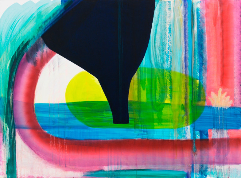 The most outstanding reference to art history in van Genderens art is of the female artist Helen Frankenthaler and her Color Field paintings. The resemblance is striking between the two, but van Genderen pushes the limits of the abstract much further. Her paintings appeal to the spectator‘s body as well as the eye, which heightens the physiological experience of viewing to an aesthetic experience.