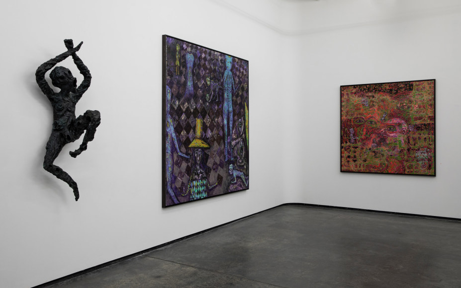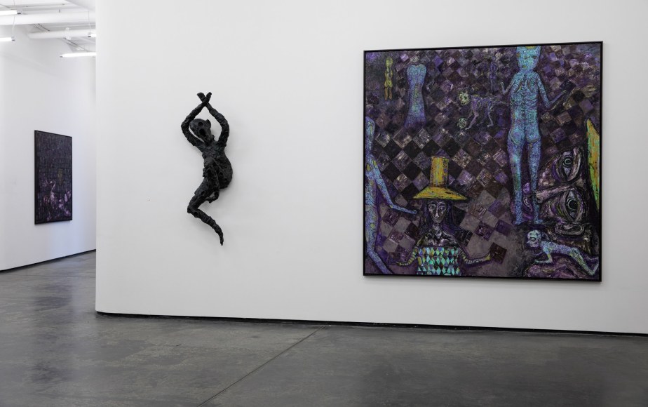 It’s been a long journey as Killi-Olsen has lived half his life outside of Norway, but now at 65 is returning home. The artist was partly educated in Poland, but in the 1980’s he moved to New York together with the two artists Therese Nortvedt and Olav Christopher Jenssen. Here he became known for his own form of expressionism, it was a range of clear colors, with twisted and humoristic characters, almost like a playful nightmare. This type of style has been following Killi-Olsen and is just as characteristic in the new paintings exhibited at Galleri Brandstrup.