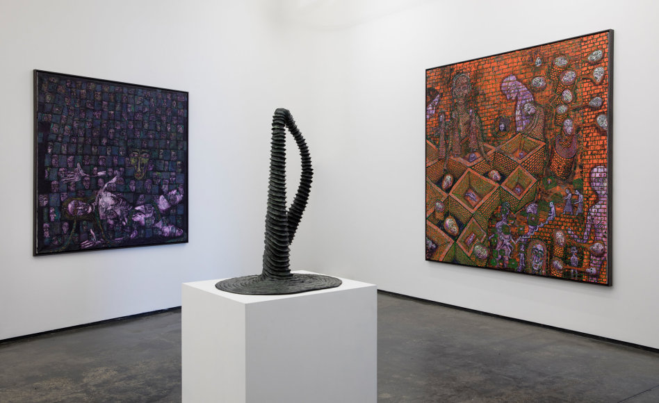 In 1989 Killi-Olsen moved to Sao Paulo in Brazil where he created the renowned work “Salamandernatten”. This has become a unique piece in Norwegian art history, consisting of 72 3 meter high sculpture covered in sand. The rough, eroded, heavily worked surfaces of the sculptures has become one of Killi-Olsens trademarks, depicting primitive and raw versions of people surrounding him.