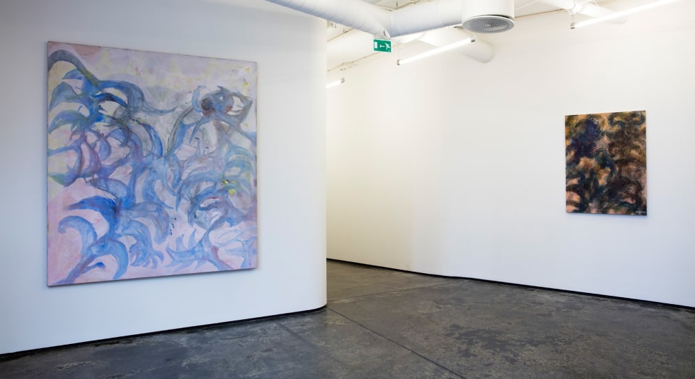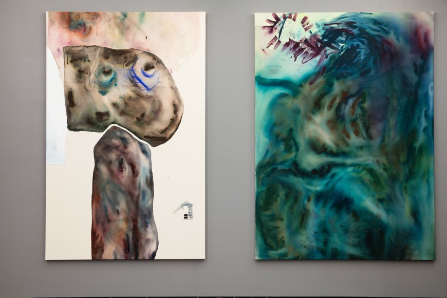 Bley lives and works in Oslo and has participated in a number of exhibitions including Conflicting Evidence at 1857 in Oslo in 2015, and will have a solo exhibition at Hester in New York in the spring of 2016. Hurum lives and works in Oslo, and has exhibited at Kunstnernes Hus in Oslo and at the Astrup Fearnley Museum of Modern Art in Oslo, and is exhibiting at Space 4235 in Genova in Italy later this year. Bley and Hurum’s productions are unrelated; however, they both have an interest in painterly experimentation and the possibilities of the canvas, as their works share compositions dominated by large areas of color that seems to have emerged onto the canvas naturally and organically.
