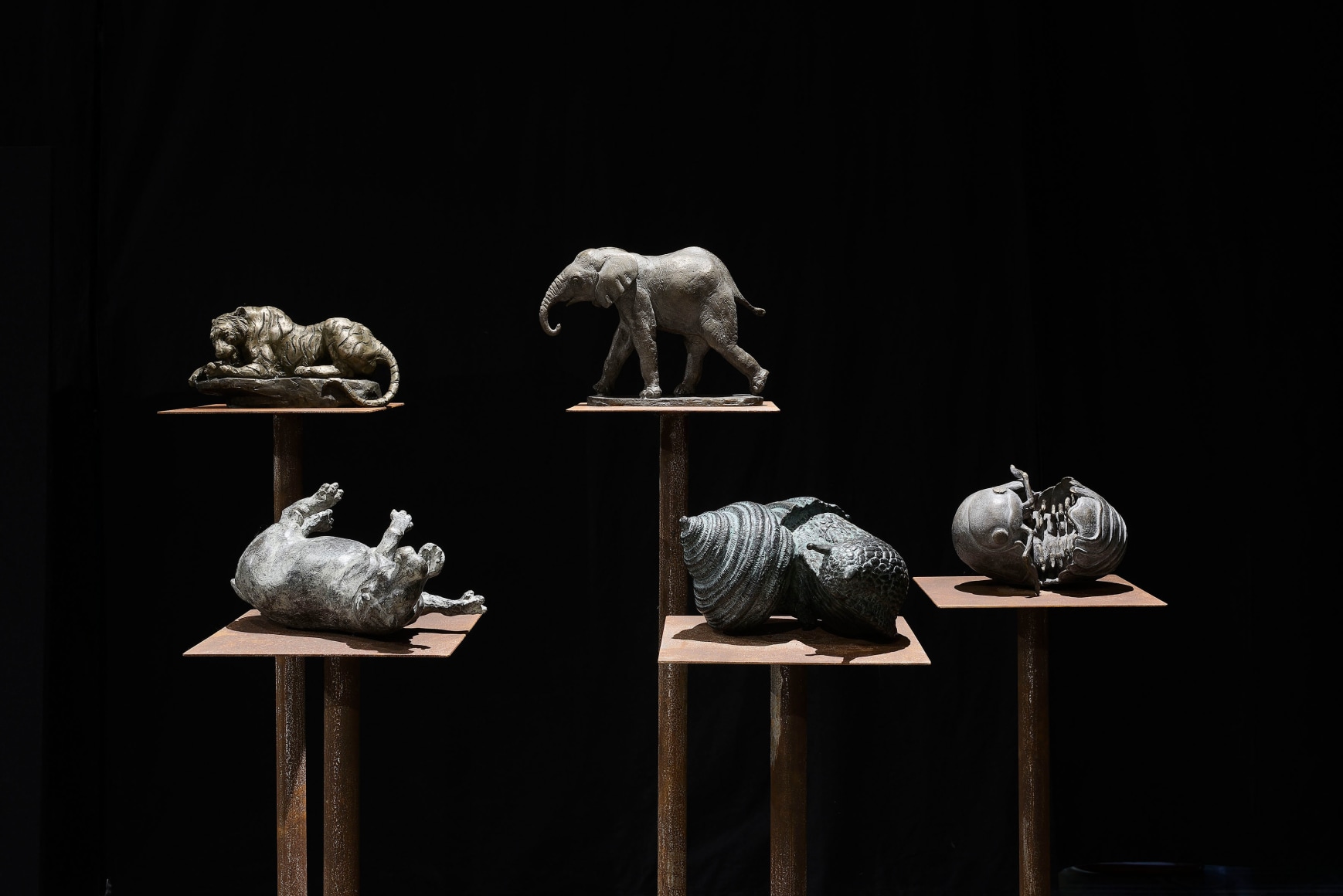 Engelsen references art-historic animalism, an art form that originated with a group of French artists in the late 1800s and early 1900s. The artist-group started a movement, which included Rembrandt Bugatti. Rembrandt Bugatti worked in the zoo in Antwerp, which allowed him to study animals and their behavior freely. Before animalism became a recognized expression, it was not considered acceptable to sculpt animals.