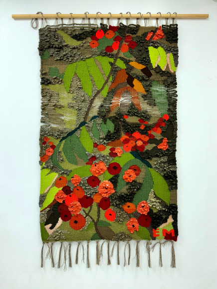 Melberg’s process is marked by accumulation. Time, memory, and material intertwine in her works, whether in handwoven tapestries, layered textile sculptures, or embroidered surfaces that bear witness to both loss and renewal. In "Elove" (2014), she embroidered the final text message from her father, a conceptual turning point where grief took form in soft, tactile materials. More recently, her practice has expanded to include plant-dyed yarn, where colors extracted from pine, rhubarb, and tansy merge with synthetic threads, creating a tension between the organic and the artificial—between preservation and transformation.