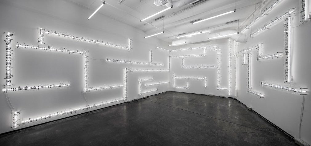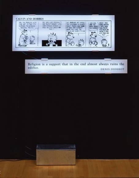 Kosuth currently resides and works in both New York and London. He has received numerous awards for his contributions to the arts, including the Brandeis Award in 1990, the Frederick Wiseman Award in 1991, the Menzione d’Onore at the Venice Biennale in 1993, and the Chevalier de l’ordre des Arts et des Lettres from the French government in 1993, among others. In 1968, he received a Cassandra Foundation Grant. In 1999, the French government issued a postage stamp in honor of his work in Figeac. In 2001, he was awarded an honorary doctorate in Philosophy and Letters from the University of Bologna, Italy. In 2003, he received the Decoration of Honour in Gold for services to the Republic of Austria, the highest honor bestowed by the Austrian Republic for accomplishments in science and culture. Kosuth's work, ni apparence ni illusion, opened at the Musée du Louvre in Paris in 2009 and became a permanent installation in 2014. In 2012, he was inducted into the Royal Belgian Academy. His work has been exhibited in solo exhibitions at institutions such as the Multimedia Art Museum in Moscow, Russia; the Kunstmuseums Thurgau in Warth, Switzerland; Haus Konstruktiv in Zurich, Switzerland; and the Australian Centre for Contemporary Art in Melbourne, Australia, among others. In 2019, Kosuth installed permanent public installations at the Miami Beach Convention Center in Miami, Florida, and the Bill Graham Civic Auditorium in San Francisco, California. His work is featured in major private and public collections worldwide, including the Museum of Modern Art in New York City, the Tate Gallery in London, the Solomon R. Guggenheim Museum in New York City, the Whitney Museum of American Art in New York City, the Van Abbemuseum in Eindhoven, the Stedelijk Museum in Amsterdam, the Louvre Museum in Paris, the National Gallery of Victoria in Melbourne, the Museum of Contemporary Art in Sydney, the Centre Pompidou in Paris, and the Galleria Nazionale d’Arte Moderna in Rome, among many others.