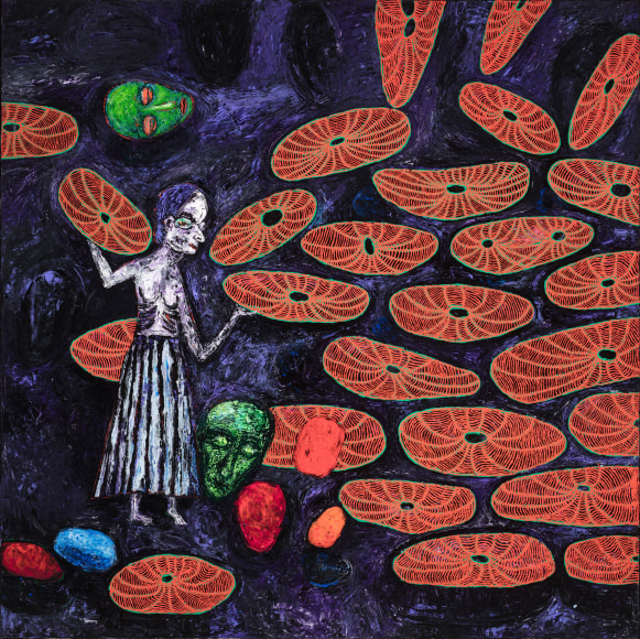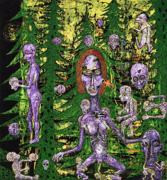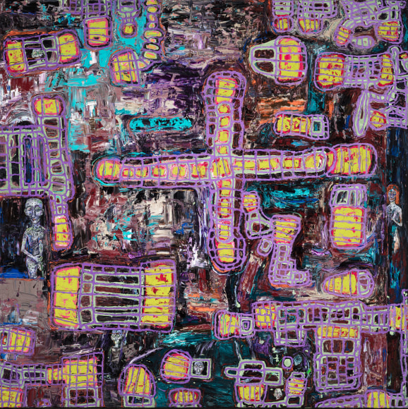 The 1980s was a defining period in Killi-Olsen's life that shaped his characteristic expression and led to his national and international breakthrough. The artistic era of the 1980s was largely characterized by a maximalist approach, including 'bad painting,' graffiti, and kitsch. It was in this environment that Killi-Olsen began creating a combination of painting and relief, resulting in works such as 'Paals Reise' (1983) and 'Bronx' (1981), which are significant in the artist’s oeuvre.