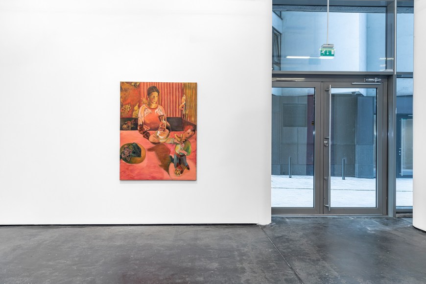 In the exhibition “Biography of a Painted Table” there are also paintings drawn from the artist’s daily life, which has been reinterpreted, decontextualised and that has become tiles to evoke lights, spaces and composition that Angelini is known for. The exhibition title is taken from two of the paintings presented in the show, which both represent this process; her work stimulated through imagery drawn from her own life, as well as images collected from art history, for then to be displayed upon an imaginary table as a story.