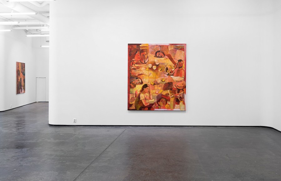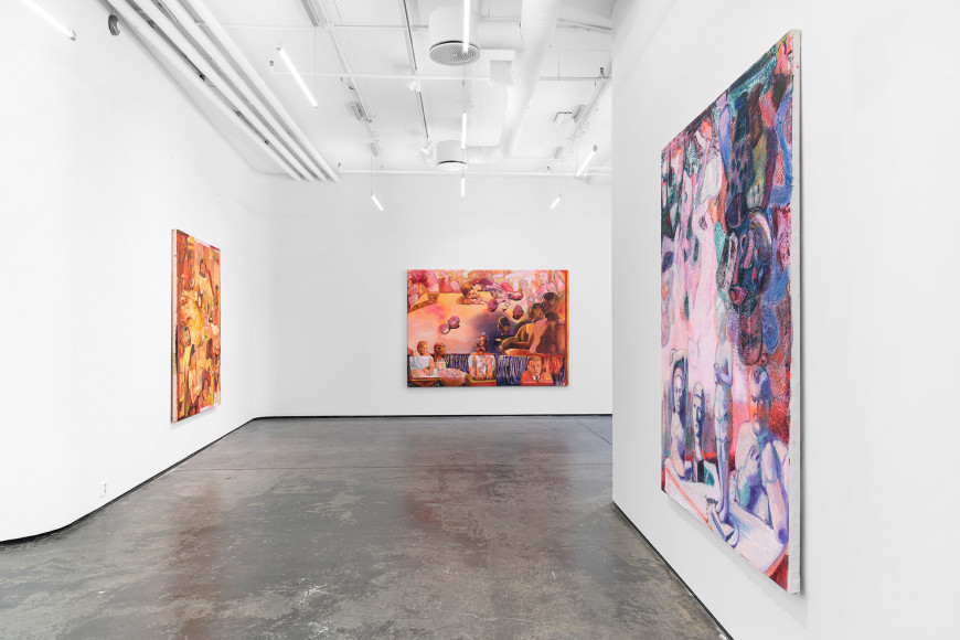 The show is made of 17 paintings, and is split into 2 segments. The first is painted traditionally with oil painting on canvas, while the second is characterised by stitched canvases, worked with several layers of color.