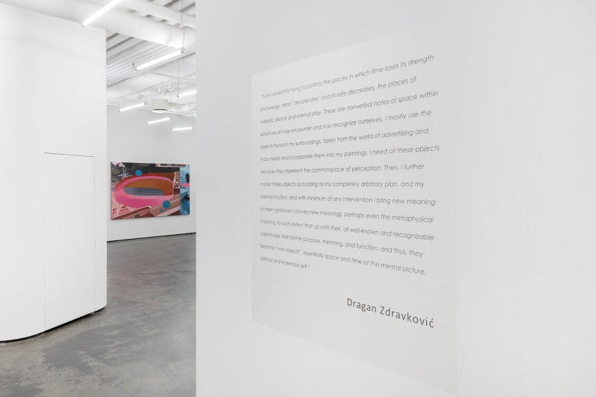 The starting point for each of Zdravković’s works entails comprehensive sketching where he uses a vast variety of drawing techniques, including digital, followed by painting with layers of thin acrylic paint, then continuing the process with oil painting. Zdravković’s work draws features from the non-objective, biomorphic paintings of Spanish Joan Miro and Cubists such as Braque and Picasso, combined with elements from realism, surrealism, metaphysical painting, minimalism, pop-art, photorealism, and the new Leipzig school of painting.