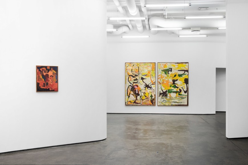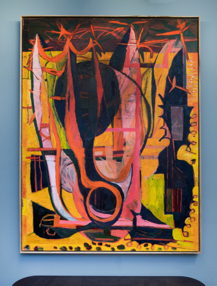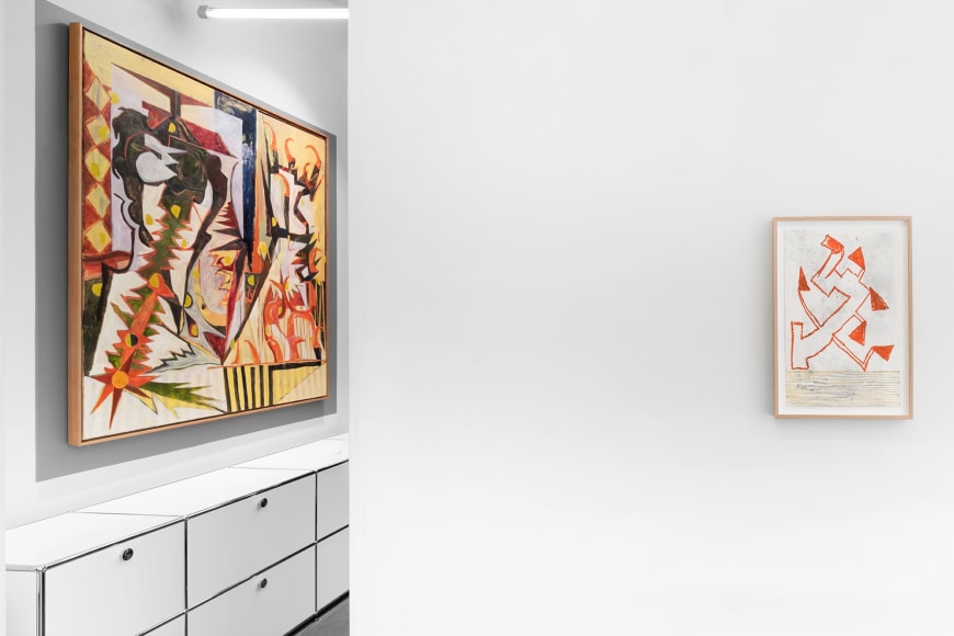 Evident in the paintings shown in “Faro” is Sørfjordmo’s thorough exploration of colors, palettes, textures and viscosity. In his use of different media and techniques, the canvas is prepared with glue and gesso, sometimes followed by gouache as a starting point, before applying oil painting, oilsticks, together with turpentine and linseed oil. The artist carefully experiments with the viscosity of the different media applied; how the paint will work in contact with the brush and canvas. In his search for the right color and viscosity, large parts of the canvas is already covered with paint; shapes and compositional play emerge and remain as a shadow in the finished painting. Through the works presented one can get a firm feel of Sørfjordmo’s study of Sean Scully's colour palettes, Steve Messam's inflatable sculptures, Per Kirkeby's and Asger Jorn compositions.