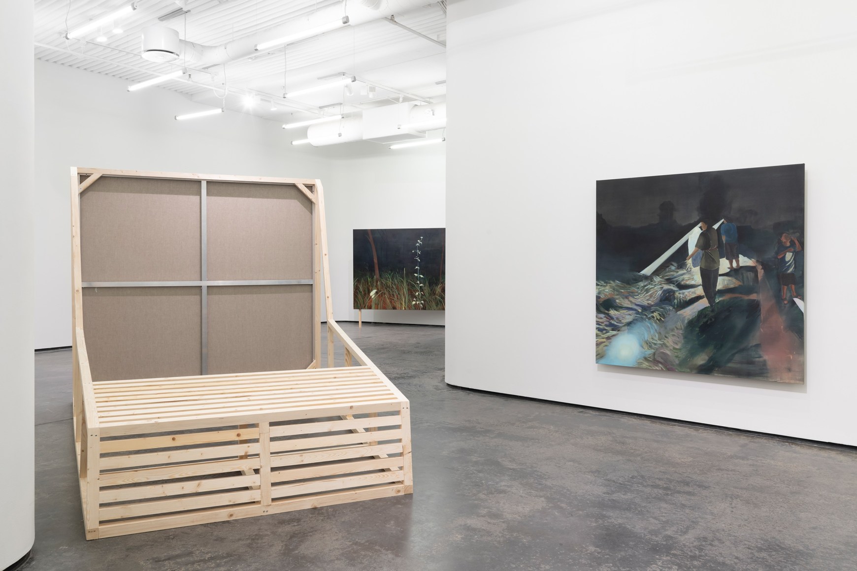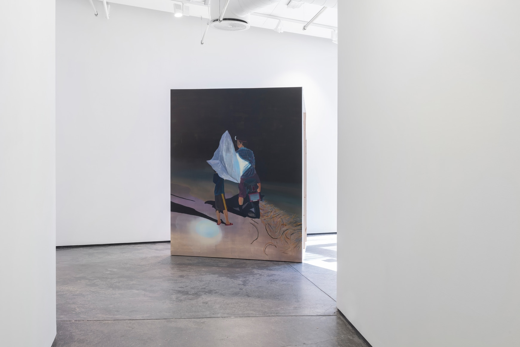 In this new series of paintings, created after Wanthiang's recent trip to northeast Thailand, there are no human faces. Instead, the spectator is met with light in the form of beams or spots, which the artist uses to direct our gaze and erase information. This technique guides viewers to look in the same direction as the painted subjects, without revealing what they see. In this exhibition, Wanthiang continues to focus on what seems peripheral, latent and somatic.