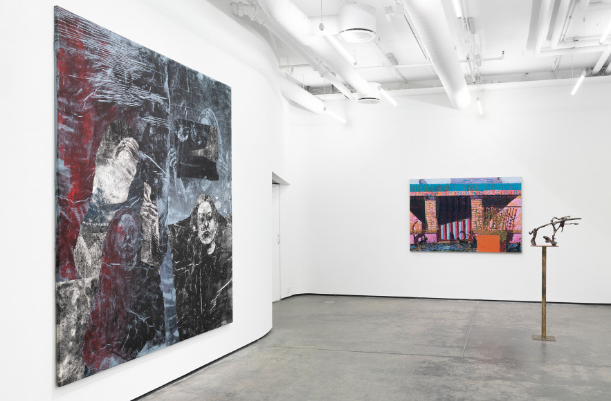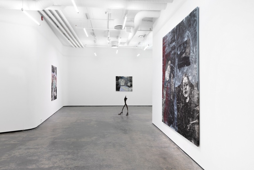 Each of the paintings in the series presented is to be seen in context to one another, together they form a painting universe, where one can recognize features reappearing in several of the artworks. Because people tend to become the governing body for how to read action and narrative in paintings, the artist has refrained from painting people in the past. Three of the new works shown in the exhibition, however, depict human figures. After his stay in Paris, the perception of light and shadow offered a new approach to embracing people in his paintings; shadows were used to transform people into an "architectural" element. The humans depicted in this series of paintings are equal to objects with no more significance than the other elements painted; they are merely part of the landscape.