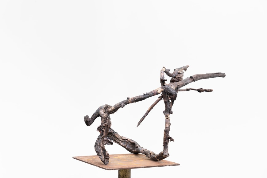Nilsen uses her work to explore topics she finds intriguing such as ecstatic engine and will. In recent years bronze is a recurring starting point in Nilsen’s practice. “I am fascinated by the material's long, and partly conservative history in the face of our time. A time that in many ways makes me think of a party in ruins.” States the artist. Through her art, she continuously explores how she can further distance her sculptures from their tradition, without completely losing touch. Nilsen has developed a distinct patination combination which she uses alternately with the raw bronze's own surface. She brushes this patination combination on her sculptures, in a grisette, an almost sloppy way that leaves the sculptures with a dirty/muddy/sooty expression in black, brown, silver and gold-like tones.