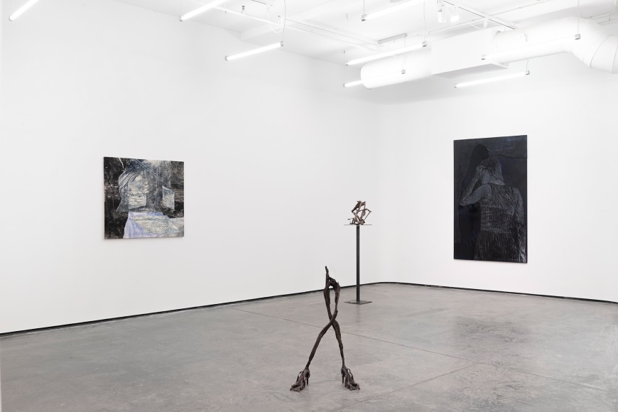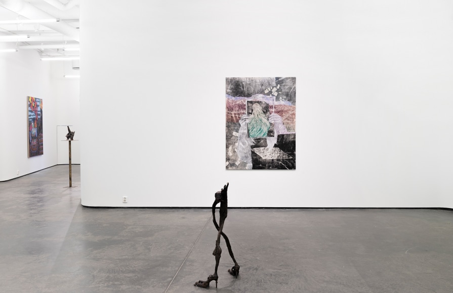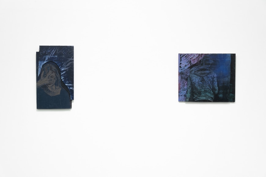Idun Baltzersen (1987 in Trondheim, Norway) lives and works in Stockholm. Her practise spans across monumental and spatial borders with a diverse range of drawing and graphics; on paper, textile, and wood. The works featured in “Idun Baltzersen, Espen Kvålsvoll, Ada Nilsen” are all different forms of woodcut. The works revolve around social hierarchies and the way people observe and evaluate one another; how the figures depicted in her work reject or hide from the observer's gaze.