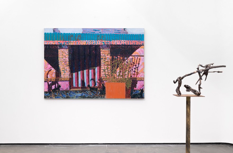 Espen Kvålsvoll (1992, Trondheim) lives and works in Oslo. His art is centred around painting, built through processing a form of a collection of motifs, assembling elements from urban landscape, architecture, ornamentation, decoration, images, art and painting history across different environments and eras. Kvålsvoll isolates these motifs from their original context and gathers them into paintings. Each series of painting are developed over extended periods of time.