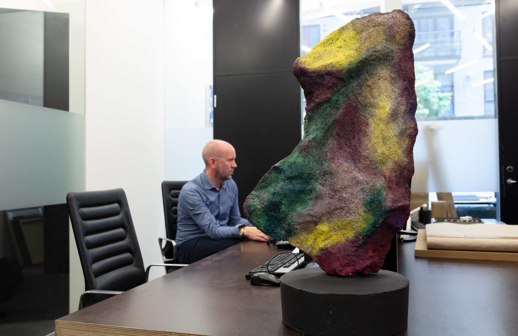 Oslo based artist Apichaya Wanthiang (1987, Thailand) explores subjects such as upbringing, environment and identity through her colorflooded painting and writing. Wanthiang is educated at LUCA School of Arts in Brussels (BA) and The National Academy of Art in Bergen (Master, Fine Art) and is currently an Assistant Professor at Trondheim Academy. In 2018, Wanthiang exhibited at UKS (Young Artists' Society) in Oslo; a breathing, mountain landscape was the main character of her grand, new commission, entitled Evil Spirits Only Travel in Straight Lines. As she creating an omen, a prediction, or presentiment, a topography of dried clay is elevated in UKS’ main galleries, heated to the temperature of the sun-scorched ground in Wanthiang’s native Thailand.