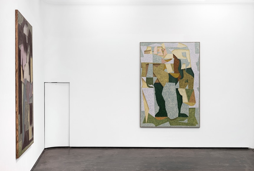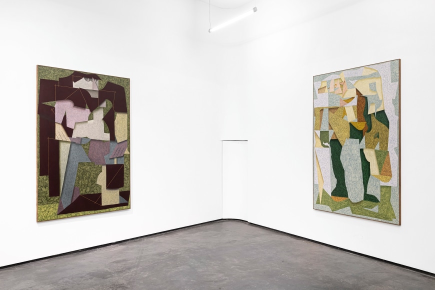 In Christer’s paintings, the fields of colour and the way the paint is dispersed becomes the main story. How a cool grey-green colour lays on top of a grey-pink and makes the colours vibrate to become impossible to describe. Or how a line jumps to the next as to lead your eye to make a space even though the canvas is flat. Shape conquers content. Shape is Content.