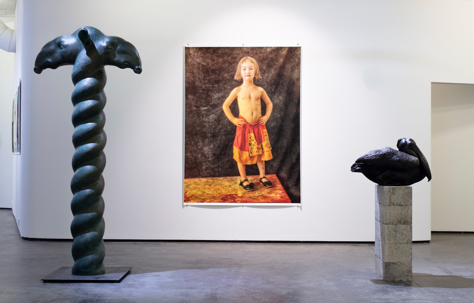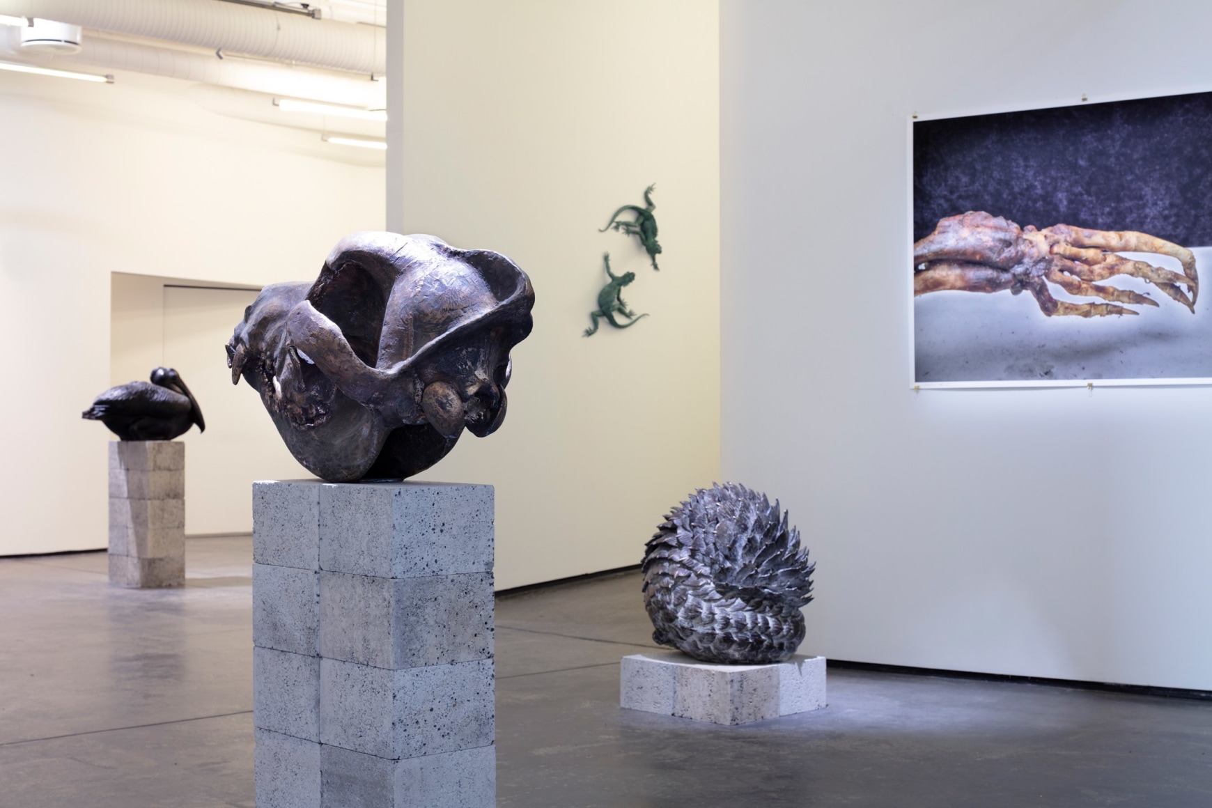 Engelsen has worked with animals from both exotic habitats and animals we know from our surroundings. The sculptures are made from stone and bronze, and the animals are portrayed as they are in their natural environment. We can observe both their vulnerability and their strengths - a chameleon with its tale around a bamboo tree or a pelican resting with its head between its wings. In Fragile Lives she has been inspired by one of Maning’s earlier motifs, the sculpture Hundeskalle is blown up and cast in bronze.
