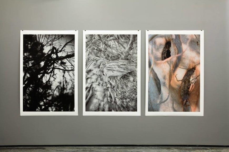 In the exhibition 'The Munch Forest 2016' motifs from Jardin Botanique and the Munch forest are mixed together. Some of the works shows the forest as a landscape where humans and animals interact with each other and others show specific and often stage details of the trees. Maning and his wife have visited Arbor in Antibes at countless occasions in different seasons through their years together. Gustave Thuret founded the garden in 1857, and although the forest consists of 2,500 trees and 1,600 plants from around the world, Maning knows it well. As Pedersen mentions, the garden in Antibes got Maning to see Munch forest with new eyes, not only as beautiful, but also as a place where plants are valued and safeguarded, regardless of species, age, shape and character.