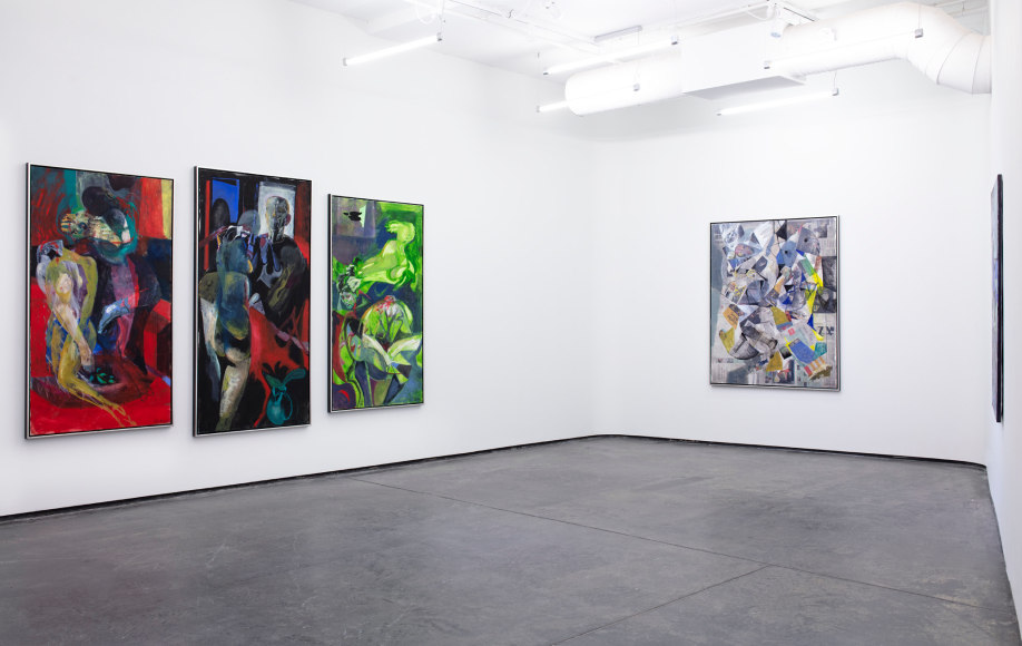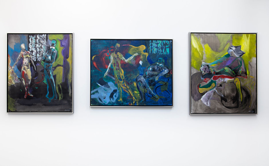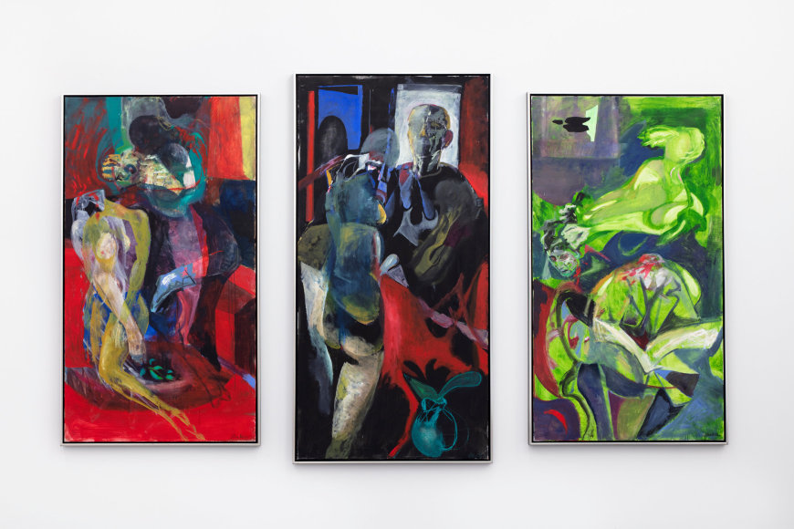 Included are also Bleken’s recognisable form; the triptych, which in "Vi elendige" display the overall theme of the exhibition: love, indifference and hatred, which is also the title of the two eye-catching series " Triptyk og elskovskampen ".