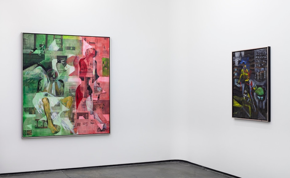 The title of the exhibition “Vi elendige" which is displayed in the main gallery plays on Victor Hugo's 1862 novel The Miserables, themed around rejects from society. Collage has a central place in the exhibition, creating a backdrop of both society's aesthetic and political debates, which contrasts to the advertisements used to create the collage; pointing to man’s simple and superficial needs.
