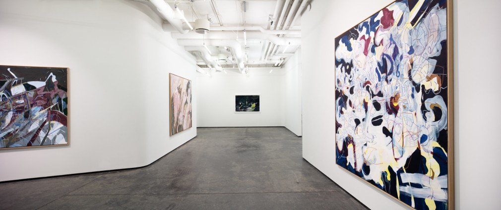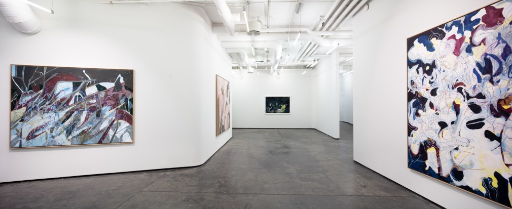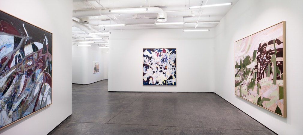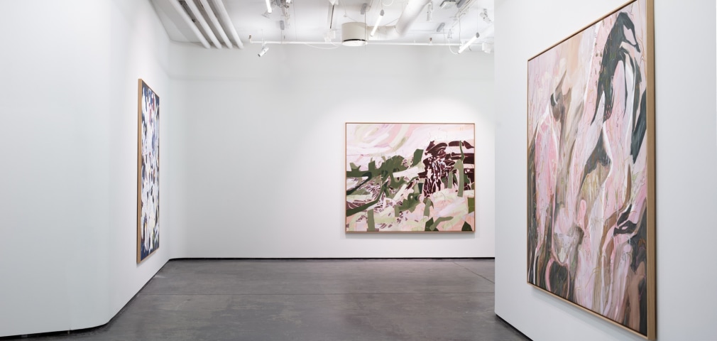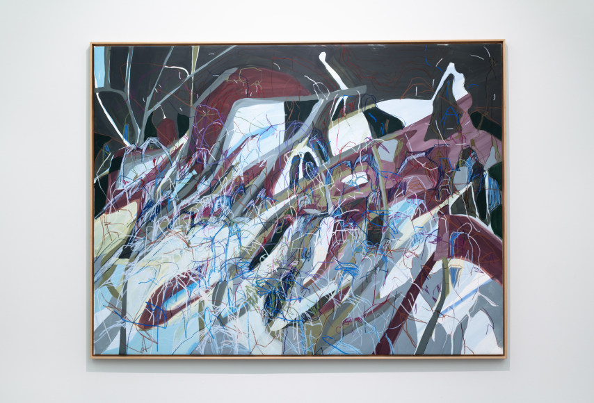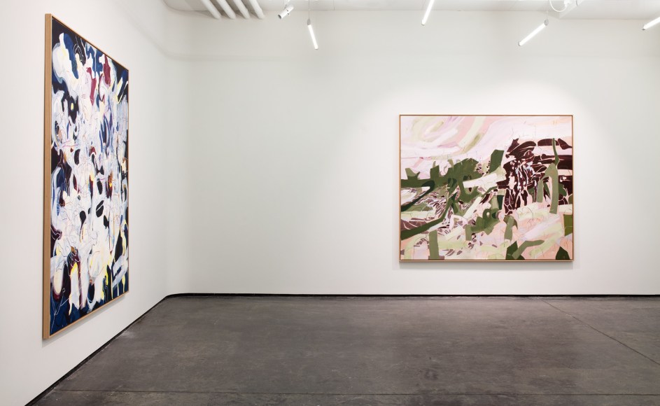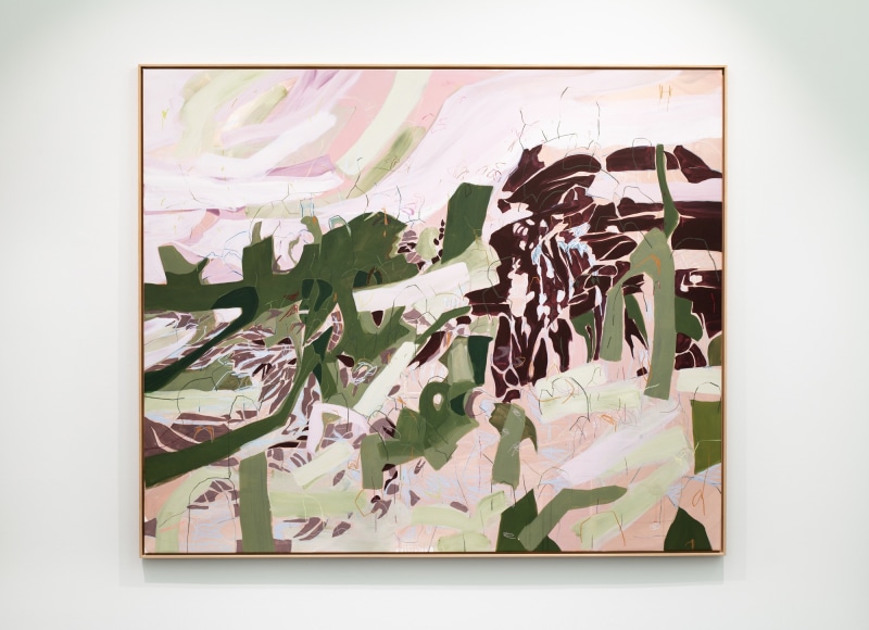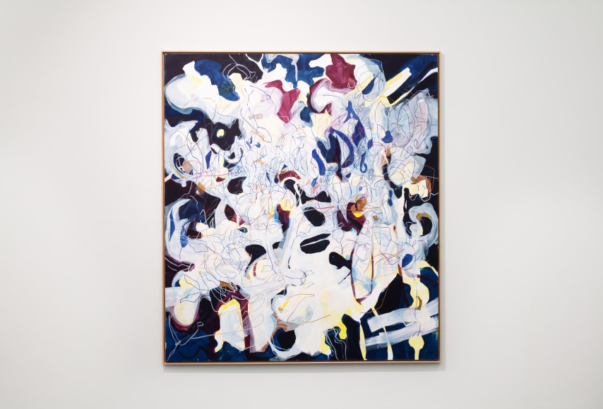 Tschäpe’s carefully nuanced canvases and drawings include imageries evocative of the natural world, suggesting growth, transition, and metamorphosis. Her continuing fascination with water and admiration of its endless possibilities of transformation manifests in the exhibition. The title “Walking Mountains and Dancing Swamps” hints towards elements of aquatic life and organic shapes, creating a universe of sublime landscapes that shifts between image, fantasy, and abstraction. With her work, she points more towards a sort of topology, sites of deterritorialization, free spaces with no national or cultural lines of differentiation.