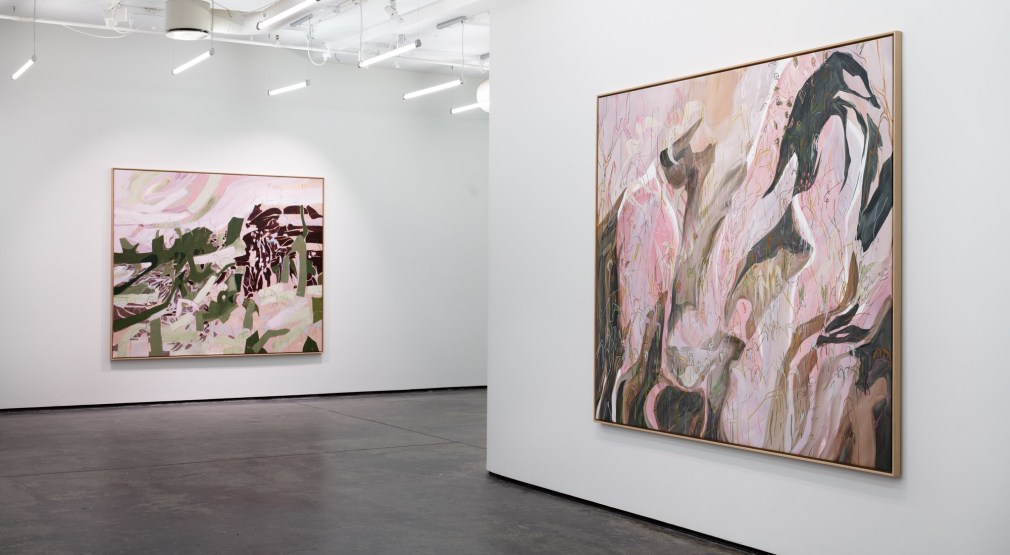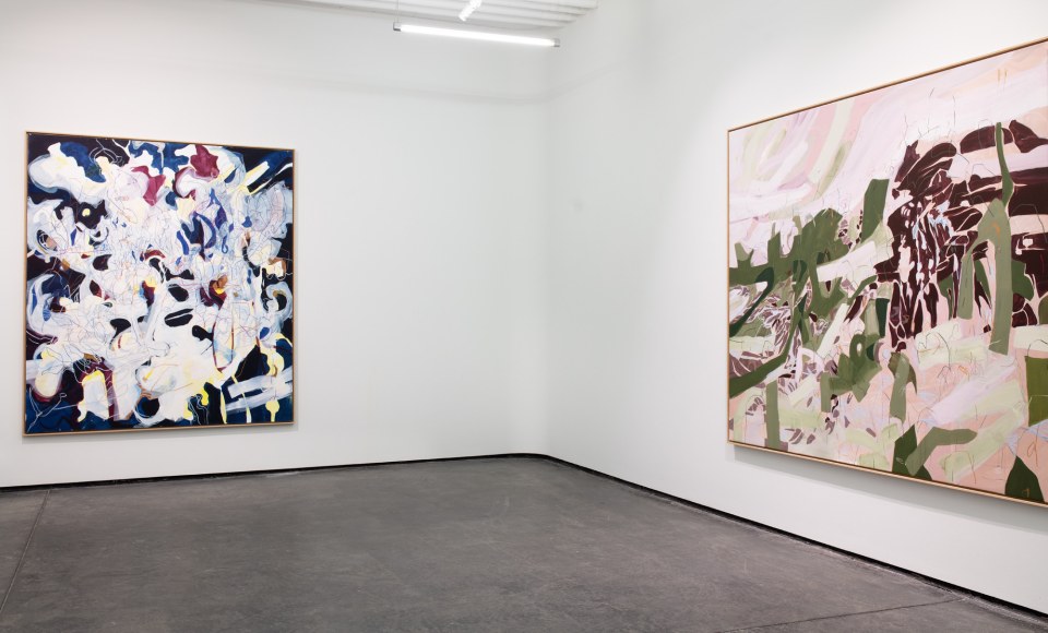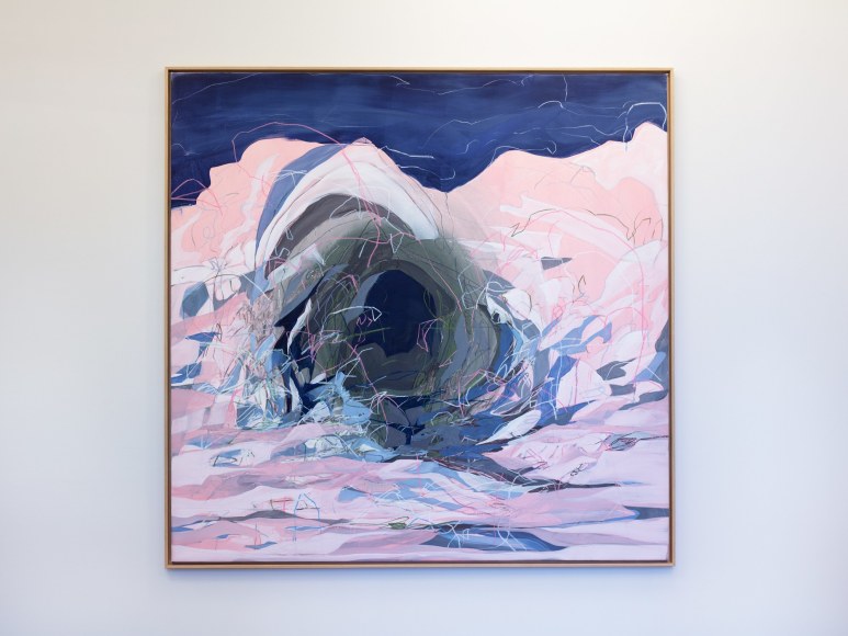 “Walking Mountains and Dancing Swamps” at Galleri Brandstrup shows a series of 13 monumental gestural paintings. Casein and watercolour are applied in successive layers on canvas and paper, irrupted by delicate shapes drawn in watercolour pencils. For Tschäpe, painting is an active medium, connecting the process of artistic practice to lifecycles found in nature. She works with colour in intuitive grand gestures, executed in pursuit of the idea of painting as an event.