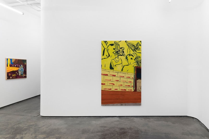 "World News" showcases – in the gallery’s smaller storage chamber – the "ULTRAIDENTIFIKASJONSPAVILJONG", a video game made by the artist in 2021. The main gallery space will show two new series of paintings; both investigated by the artist who here chose here to embody the role of an “observational artist” within the world of the video game, by taking the position of an outside observer in order to find a way to make sense out of it, akin to a manneristic perversion of an exhausted information age; trapped between reality and lies, faux news and possible truths.