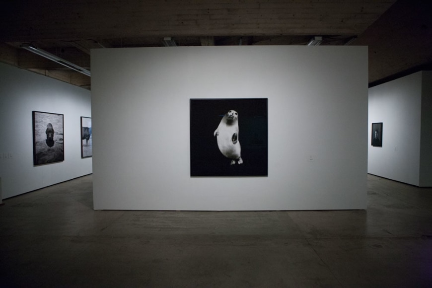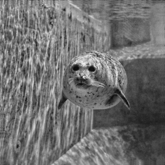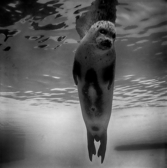 In 1988, Maning patiently portrayed a group of seals in aquariums, which are toned black and white photographs represented Norway in the Venice Biennale in 1995. As they swim by the aquarium glass, as elegantly abstract as they are eloquent, they do not seem as animals anthropomorphized zoo victims. They are represented as creatures with soul and psyche, whose existence reminds us of the animals in each of us.