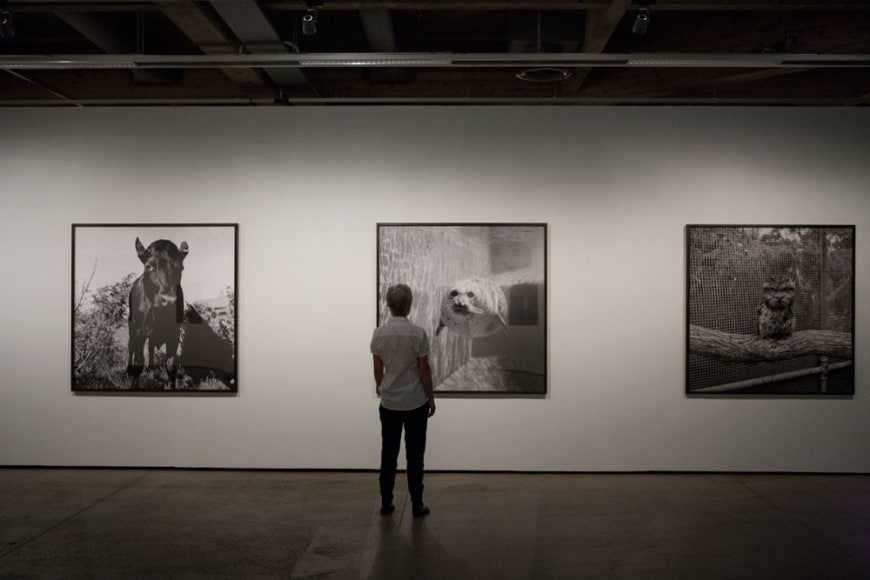 When viewing Maning’s work, one notice how he creates a fine line between man and nature, by mainly portraying animals we keep in our homes, farms and zoos. Maning began portraying animals in the early 80’s, when he started photographing his sick Labrador retriever, Leo, every day of the last three years of his life. Two of the photographs from this project are represented in the permanent collection at The Museum of Modern Art in New York. In addition to reflecting the growth of Maning’s own self-awareness in the process, the project reveals the dog’s identity, energy and spirit, without documenting his physical decline.