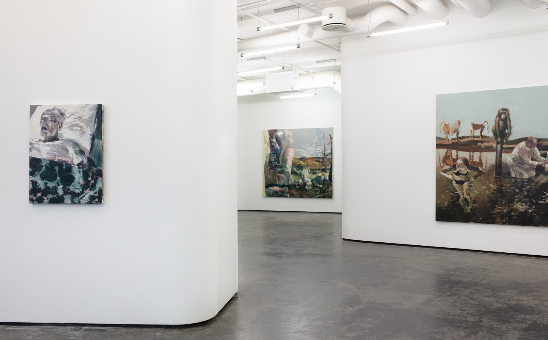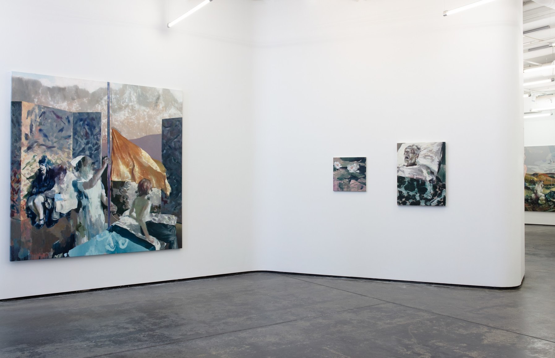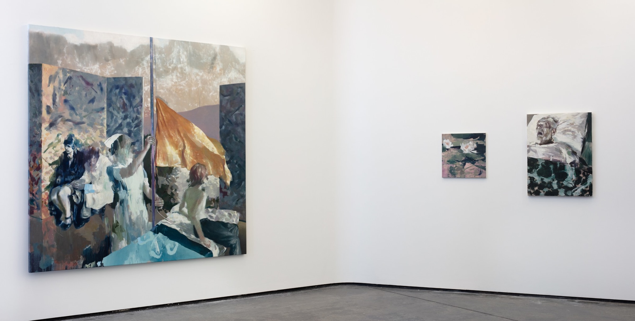 I drew. Dozens of unprecise drawings without lifting my eyes from this wreck of a man in front of me. To comfort myself. Blind contour. And I knew If I didn’t get this right, if my show did not reflect this overwhelming experience, my work would be fraudulent. My inner Viking would be a cowardly escapist and the paintings would be sweet nostalgia. I had to postpone. Håkon Bleken painted his father’s “lit de parade”, a painting hard to look at but even harder to look away from. I wanted to paint my father in free fall between this world and nothing. I wanted to paint a beautiful image of the grotesque and frightening, and I wanted every brushstroke to be an act of comfort. For the man and for the image itself. It took the months it required.