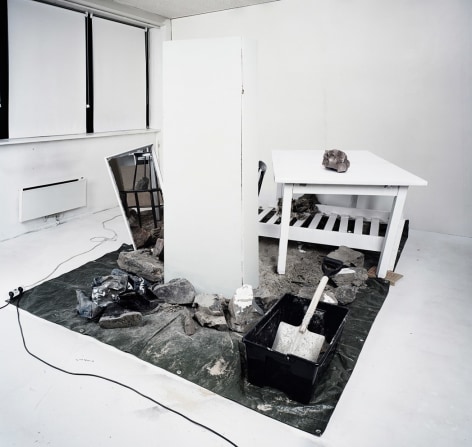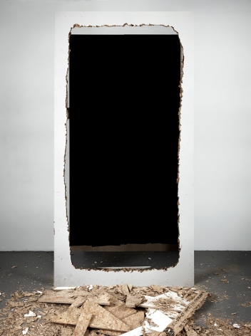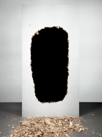The series Of Violence symbolizes the desperate attempt to create spaces around us when we are without. The artist Lucio Fontana is known for violently cutting the canvas with a knife to create a physical dimension in the painting. Dahlstrøm has taken interested in this performative attempt to create space, and has used an axe to cut through the wooden surface in the series of photographs in Of Violence. By this, he wants to make a reflection on how humans always changes the landscape that surrounds them.