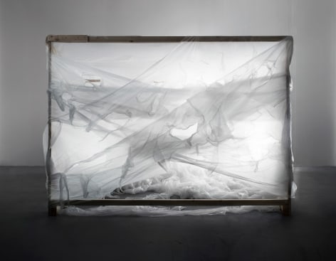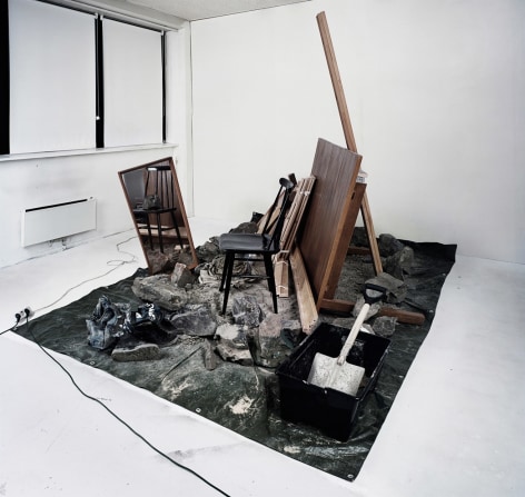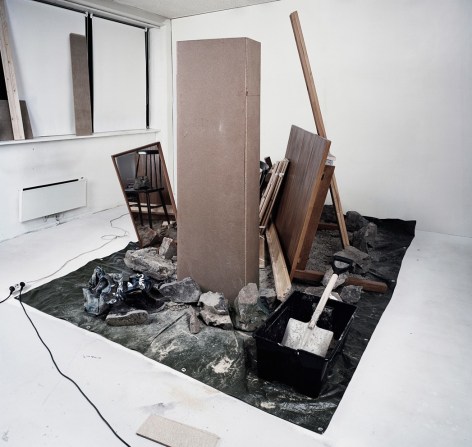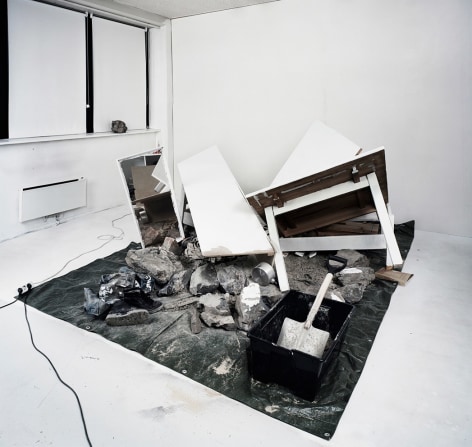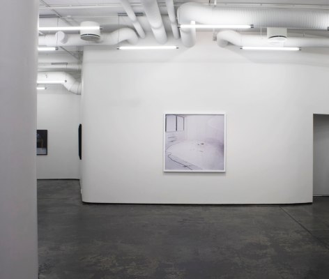 In the two series Drift and I am The Space the artist has let himself inspire by a quote by architect Juhani Pallasmaa; «Lived space is always a combination of external space and inner mental space.» In Drift and I am The Space Dahlstrøm puts forward the crossing between mental and physical space, on the borderline between the outside and inside. In the works, one can recognize a few objects that we associate with interior, such as chairs, cabinets and tables, as well as elements from nature and public areas.