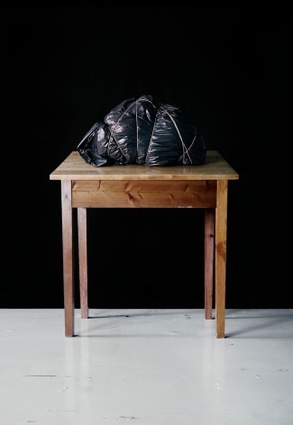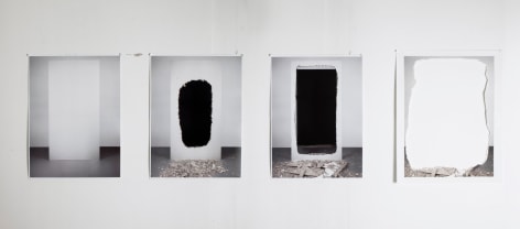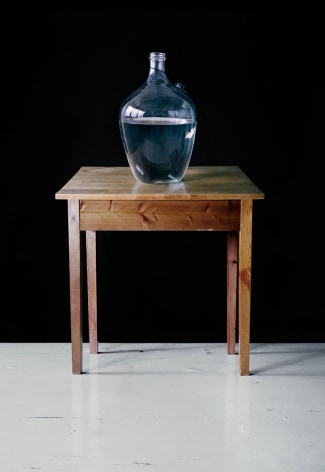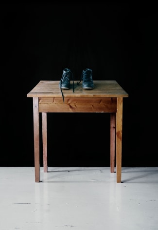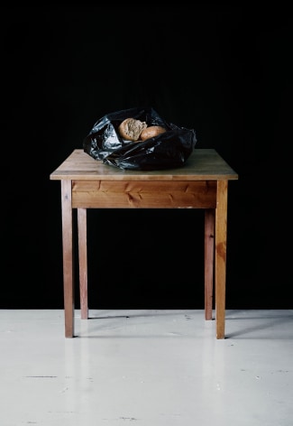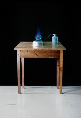 In his first series Preconditions, the artists has concentrated on human basic elements, which become more obvious under circumstances where only basics are accessible. The series show a sequence of photographs visualizing human primal needs, showing water, fire, bread and clothes, shifting at the surface of the same table in front of a black monochrome backdrop. They create references to the tradition of the still life paintings of the Renaissance, however as a bleak opposition.