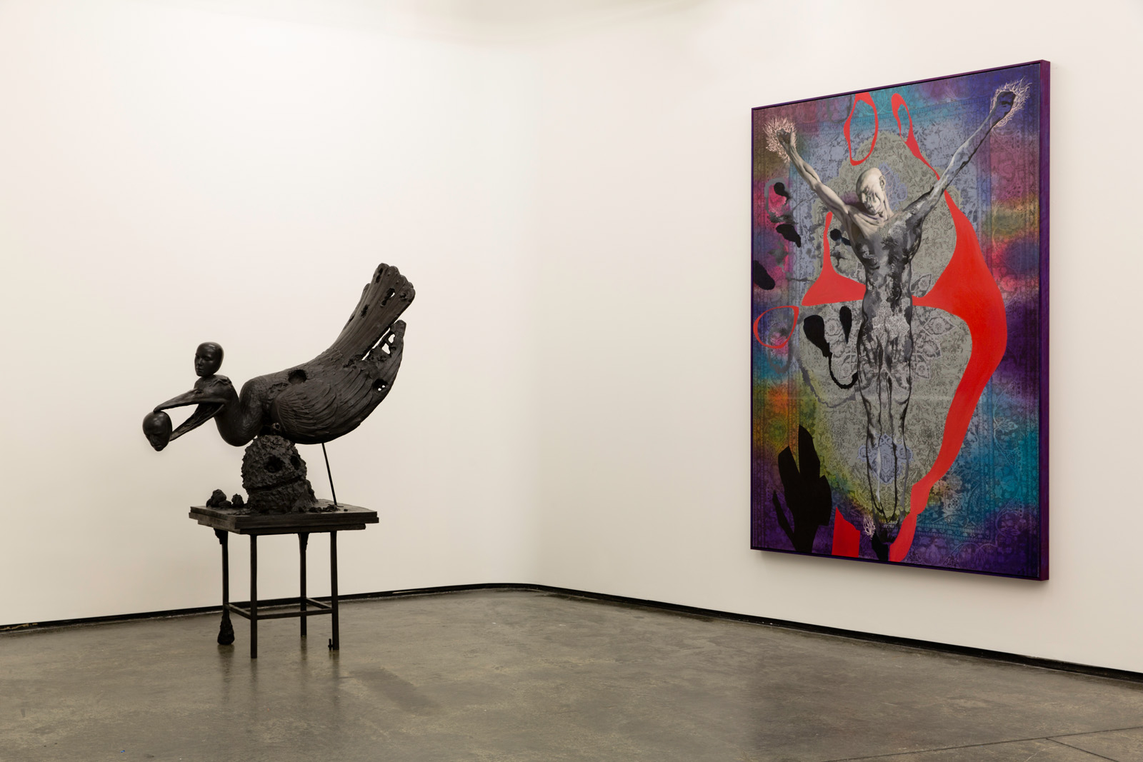 “NÅ. INGENTING. TO” will consist of all new artworks and in addition to his paintings, Bjertnæs is showing five new sculptures cast in bronze. They are different figures that all tell separate stories: from Adam and Eve’s eviction from paradise, to fantasy stories of mythical creatures. He will also be showing eighty illustrated photographs, an animated movie and several sound works which are, as the exhibition, titled Nå, Ingenting and To.