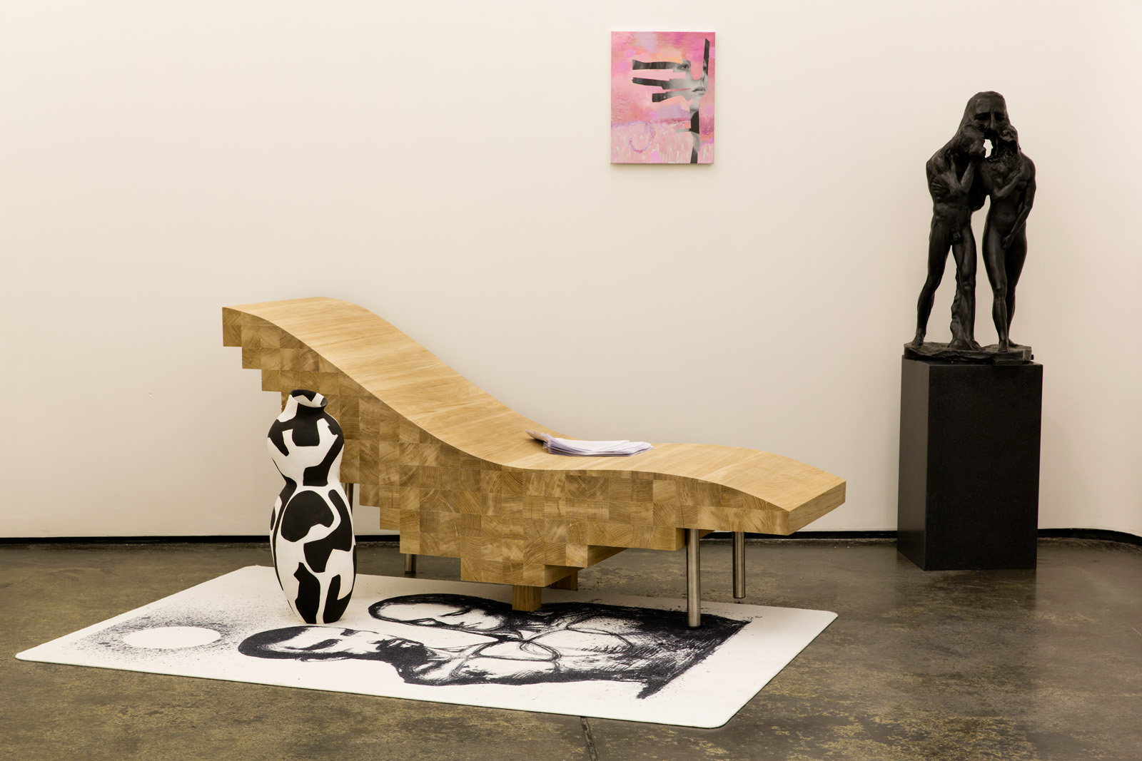The curation focuses on the divisions of the gallery space at Galleri Brandstrup; divided into two parts, the upper and the lower gallery. The Norwegian violinist Bertil Palmar Johansen has composed the sound works, which has a symbolic placement in a long corridor between two sections of the gallery. The two parts symbolizes two different parts of the course of life. In upper gallery, Bjertnæs has created a room that gives a feeling of aloneness. In the lower gallery, a larger space at the other end of the corridor, he explores the various aspects of love, life as two and of death.